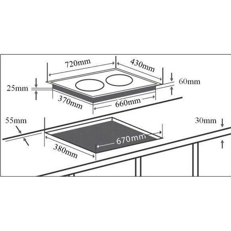 | Kích thước bếp | 720 × 430 × 60 mm |