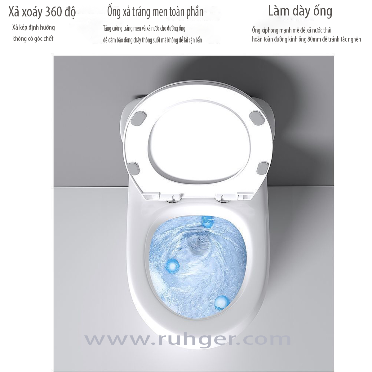Công nghệ xả xoáy 360° Siphonic Flushing giúp dòng nước xoáy mạnh mẽ, xả sạch triệt để, không góc chết, hạn chế tối đa bám bẩn.