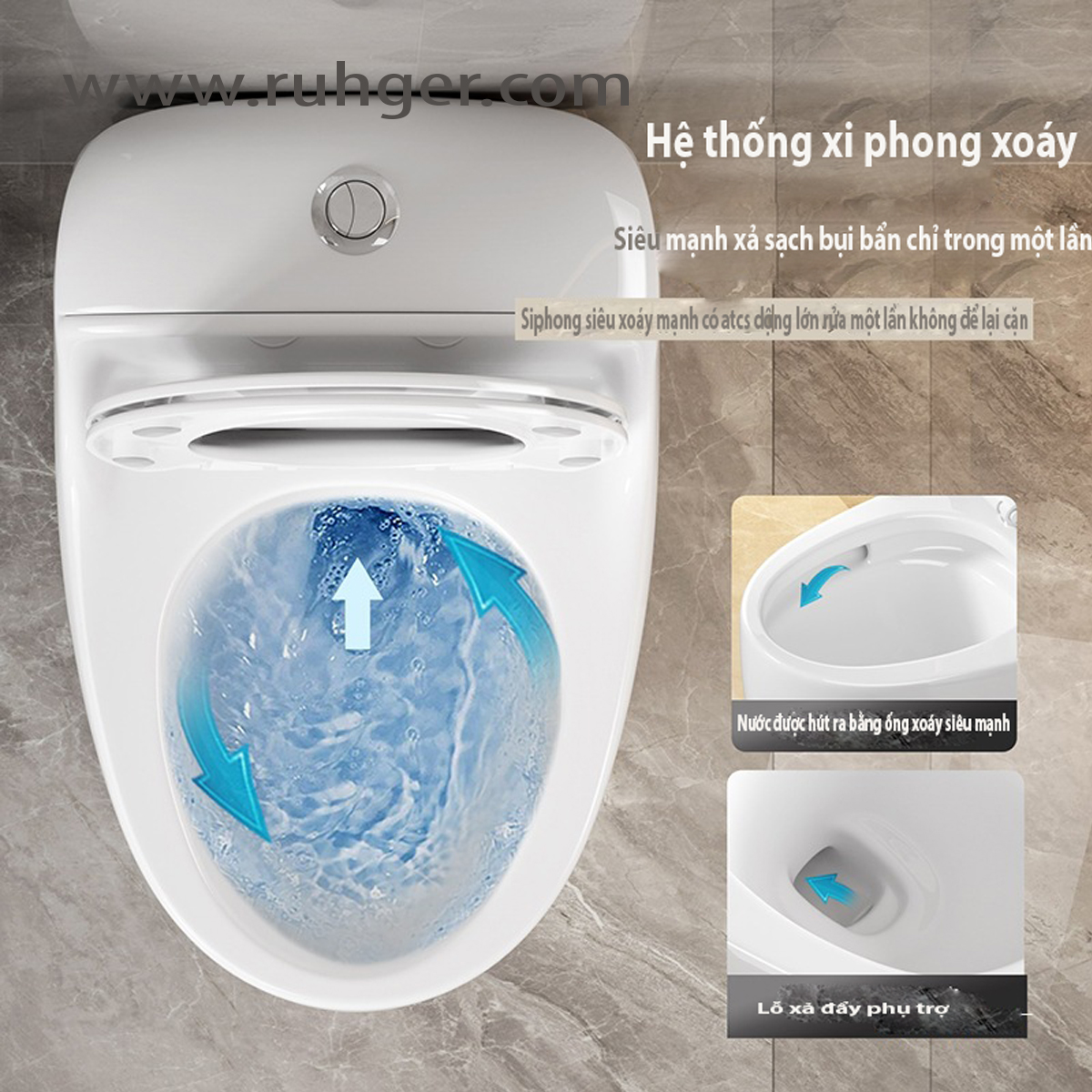 🏆 Sản xuất từ sứ cao cấp, nung ở nhiệt độ cao, chống thấm nước hiệu quả. 🏆 Công nghệ xả xoáy 360°, cuốn trôi mọi vết bẩn một cách nhẹ nhàng, nhanh chóng. 🏆 Bề mặt tráng men nano chống bám bẩn, giúp dễ dàng lau chùi, giữ vệ sinh lâu dài.