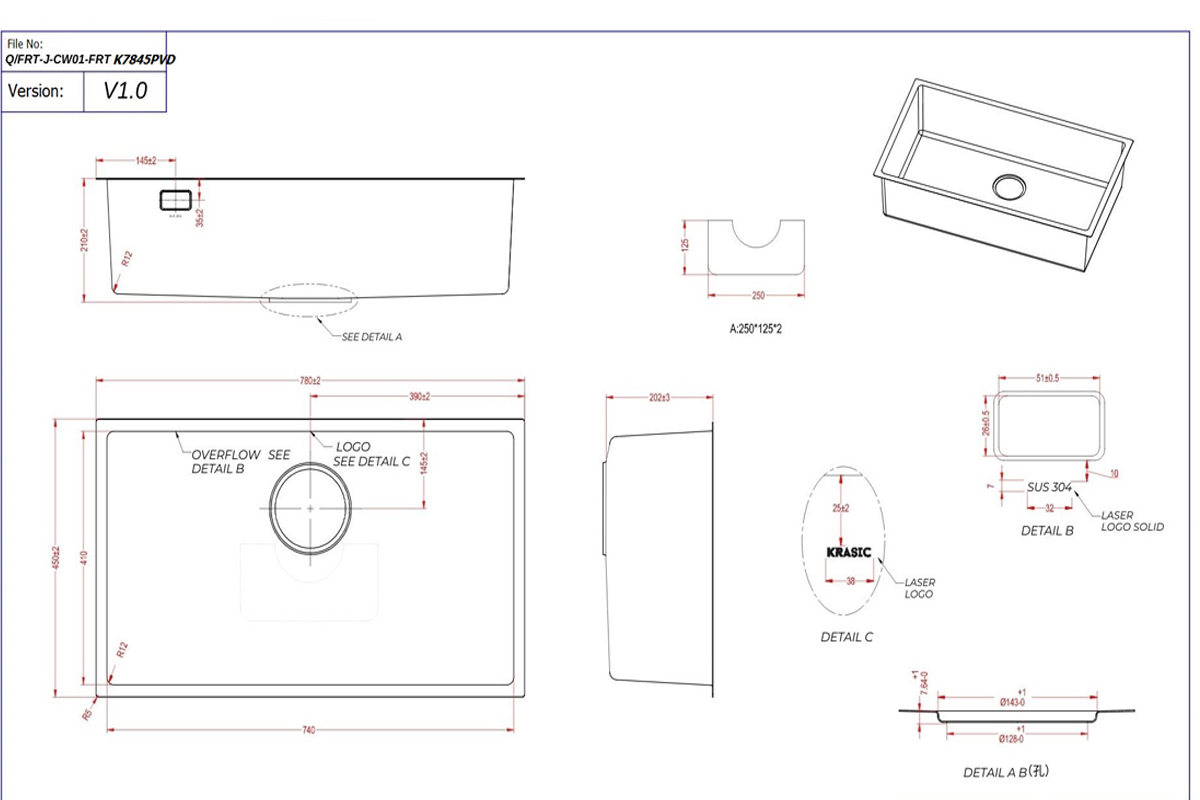 KRASIC K7845PVD phù hợp lắp âm, lắp dương hoặc bán âm mặt đá, tùy theo thiết kế bếp.
