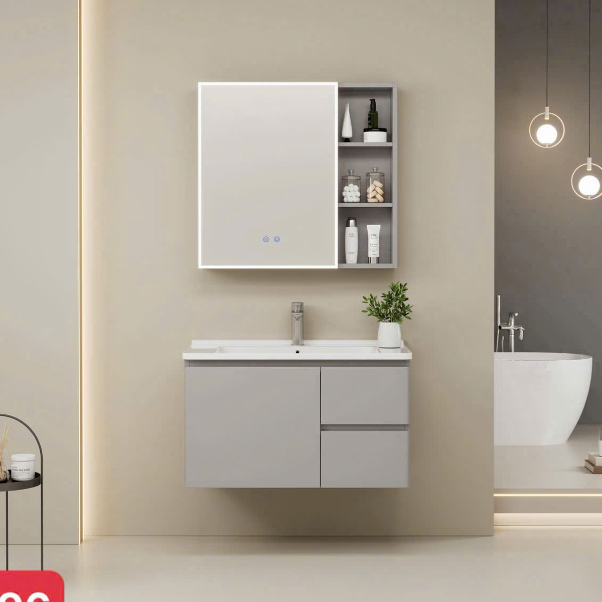 🔹 2. Chậu Rửa Mặt Có Tủ Inox + Gương LED Cảm Ứng