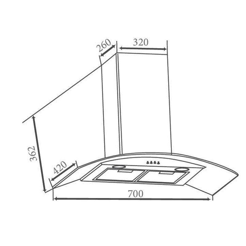 | Loại máy | Máy hút mùi kính cong treo tường |