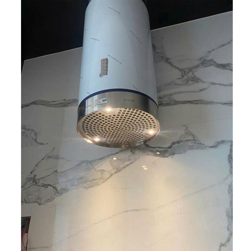 Thiết kế độc lập dạng ống tròn giúp dễ dàng lắp đặt ở giữa đảo bếp, tạo điểm nhấn thẩm mỹ cao.