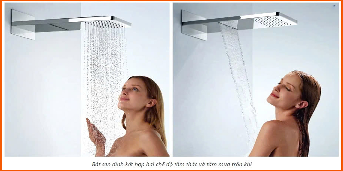 - Tắm mưa trộn khí (Air-Mix Rainshower) – Mang lại cảm giác thư giãn nhẹ nhàng như tắm dưới làn mưa tự nhiên.